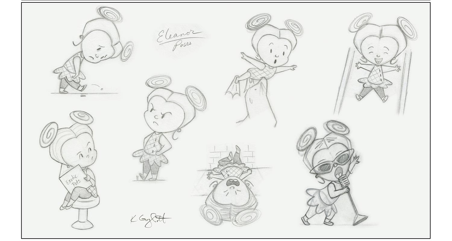 August 5, 2023 · Title: Various character studiesMedium: Colored pencils on illustration board; graphite on drawing paperSize: n/a © 2023 Kathryn Gogliotti. All rights reserved.